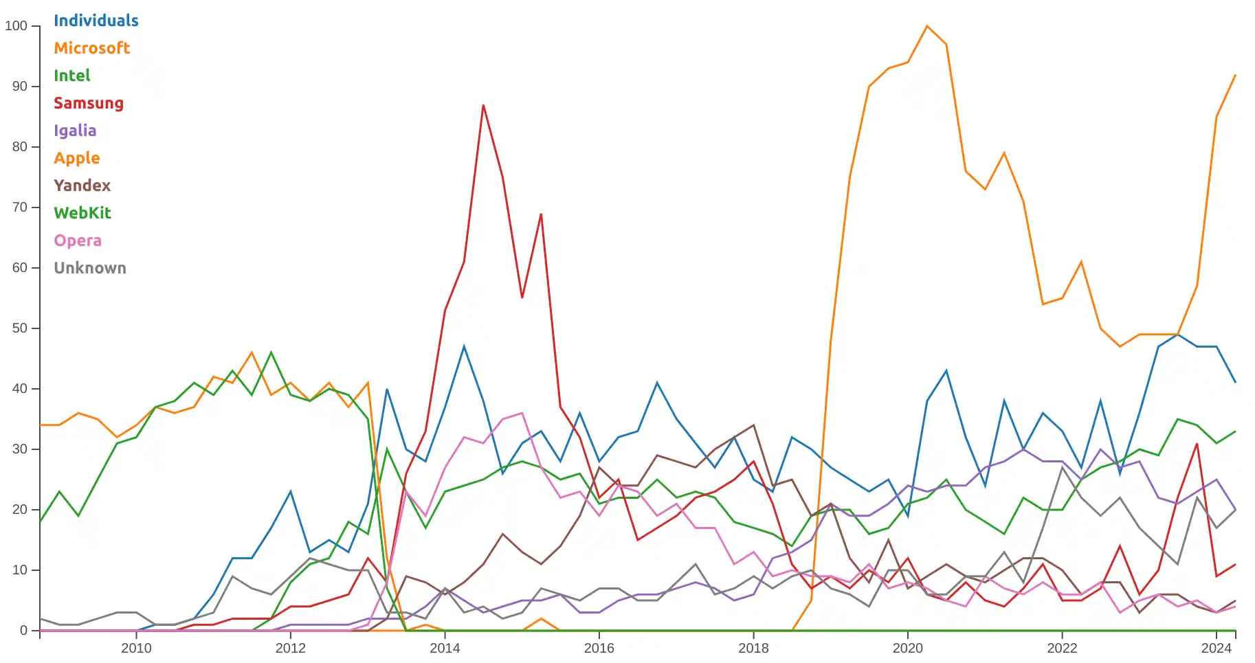 In the last 6 years, Igalia employees have been contributing thousands of patches to Chromium, consistently more than Microsoft even if they are a much smaller team. Thanks Igalia for making the web better.