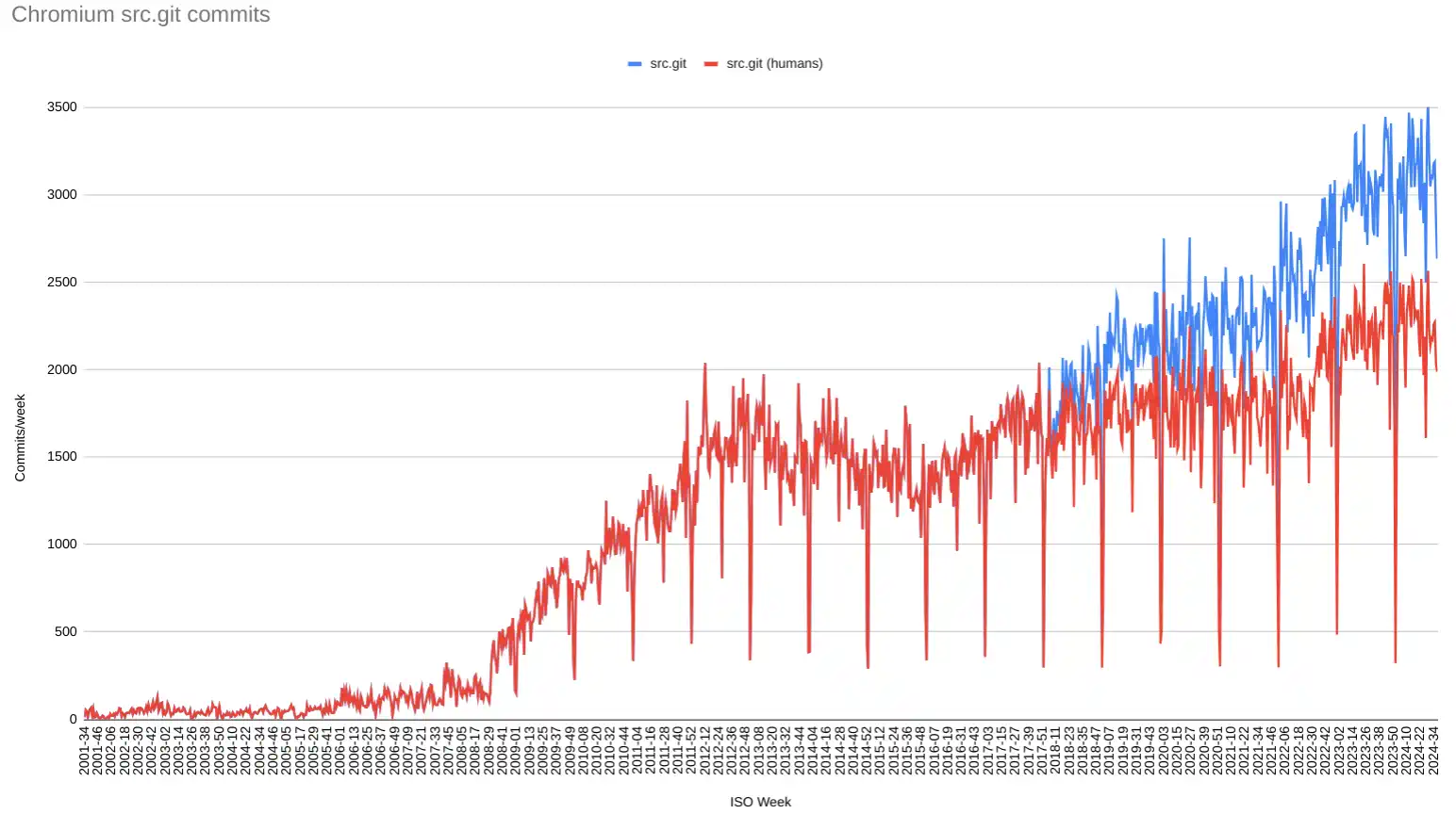 Commits per week in Chromium’s src.git